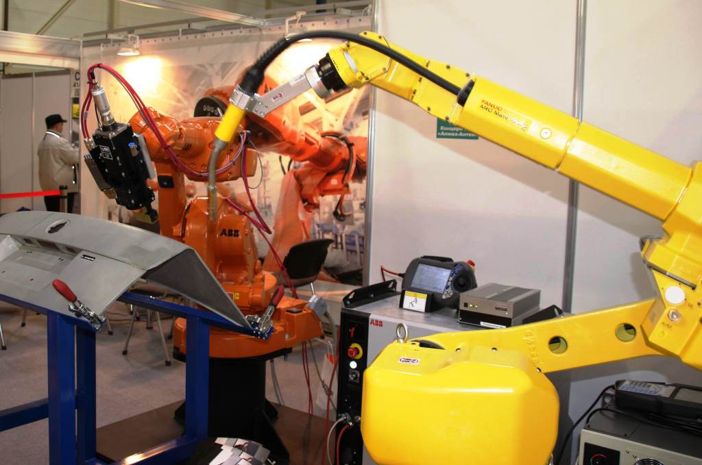 Например, в рамках выставки РОССВАРКА 2014 нами продемонстрирована уникальная сварка роботом с лазером тонкостенного металла. При этом сварочный робот ABB оснащен сканером. Робот сварочный со сканером в реальном времени позволяет корректировать поиск шва лазером с роботом. Одновременно на стенде работал промышленный сварочный робот Fanuc с горелкой для дуговой сварки.