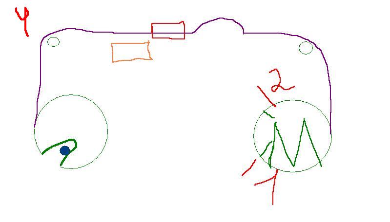 Смотрим рисунок 1. Зеленый круг слева – защелка дверного замка, который стоит штатно в машине. Рядом с ним синий кружок – та деталь, которая стоит на стойках автомобиля, за которую замок и держится. Дальше идет дополнительное оборудование – справа зеленый кружок с буквой “М” – моторчик электропривода, я взял от стеклоподъемника. От него к защелке замка идет тросик – фиолетового цвета. На тросике сделан герконовый датчик – красный и оранжевый прямоугольники. Обращаем внимание на метки положения моторчика – там их две. Сейчас первый рисунок – это дверь полностью открыта, моторчик стоит в первом положении, тросик ослаблен, датчик разомкнут.